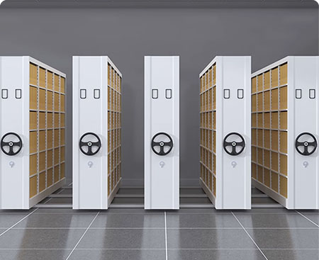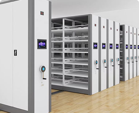 密集架组型可按需定制,采用绿色环保粉末表面处理,配备列号显示屏便于查询。传动系统采用六键轴传动,具有传动小、扭矩力大、结构稳定等特点