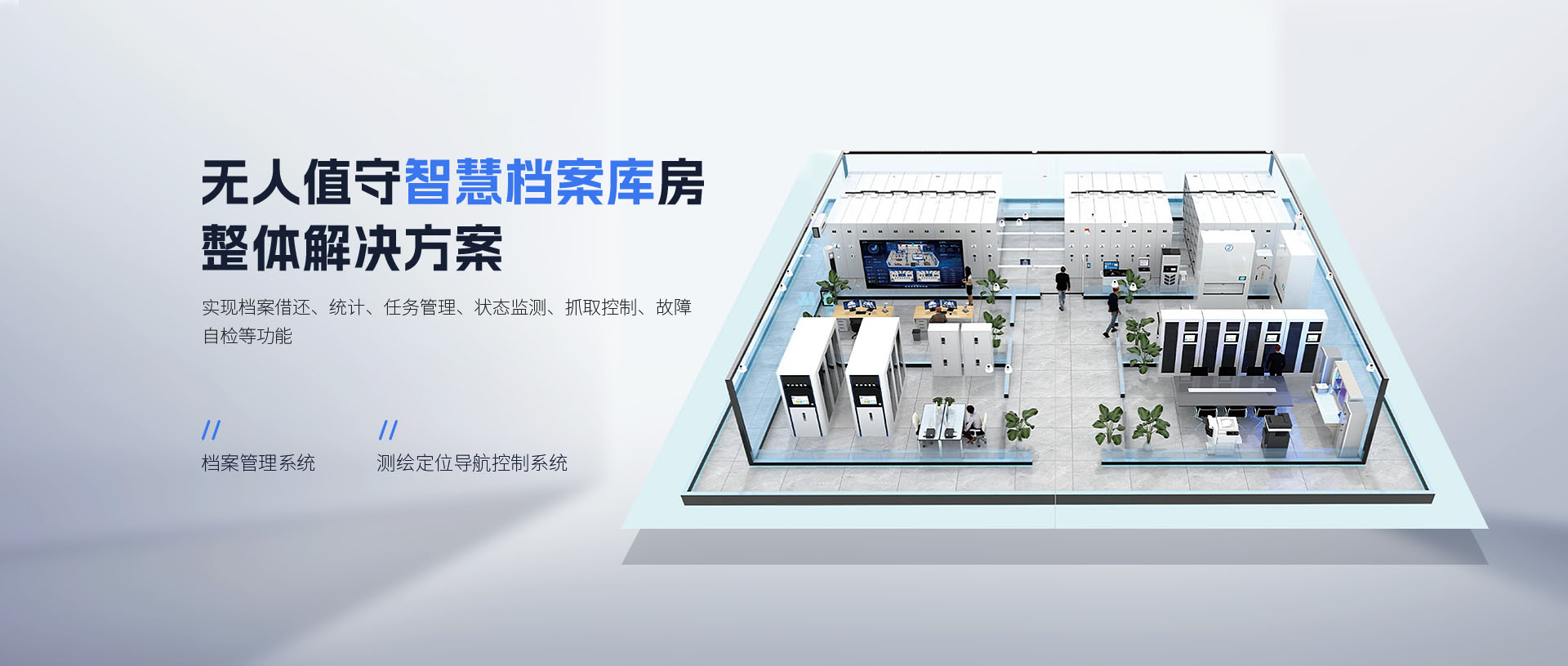 在智能档案存储方面,公司推出智慧档案馆及无人值守智慧档案库房整体解决方案,配备档案管理系统、测绘定位导航控制系统等
